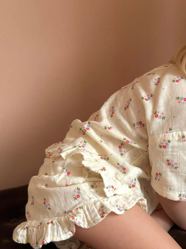 Okker-Gokker - Shorts mit Blumen 'MUSLIN AOP BLUE FLORAL SS SHORTS - BLUE FLORAL'
