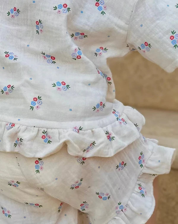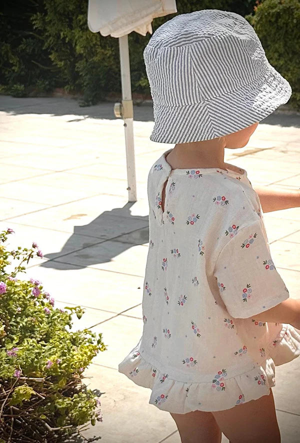 Okker-Gokker - T-shirt mit Blumen 'MUSLIN AOP BLUE FLORAL SS T-SHIRT - BLUE FLORAL'